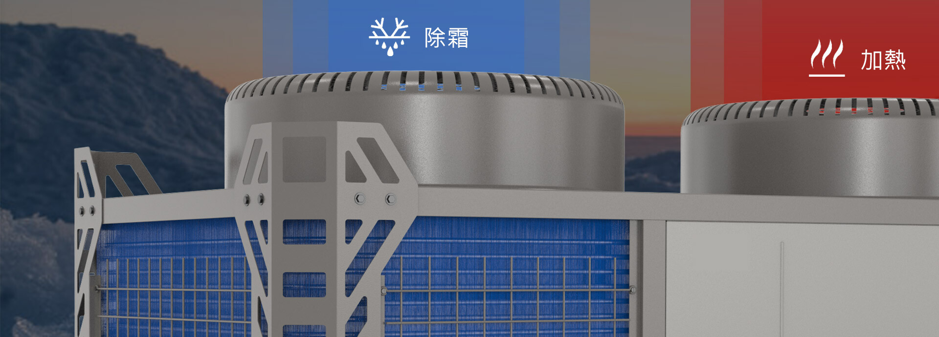 空氣源熱泵機組採用智能除霜技術,可根據機組運行狀況(運行時間,排氣溫度等) 結合環境溫度,結霜厚度判斷是否除霜,做到有霜除霜,無霜不除,大大延長了除霜周期,化霜時間縮短20%以上,確保機組較高的制熱能力和能效,保證機組高效運行。